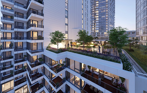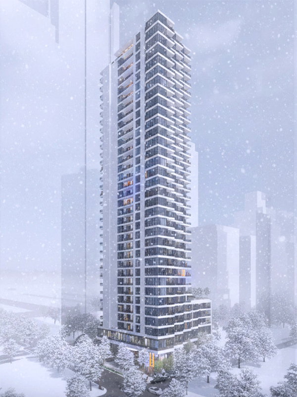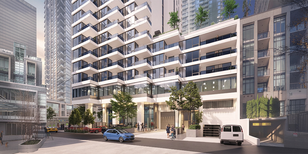 Located at the corner of Hornby and Drake in Downtown Vancouver, the tower massing is built on the strategy by opening key corners of the site to create a generous drop-off area and strengthen connections to the surrounding urban context. Featured with a series of staggered, sawtooth balconies are integrated into the façade, introducing subtle articulation while maintaining a clean and cohesive architectural expression distinct from typical cantilevered balcony designs.